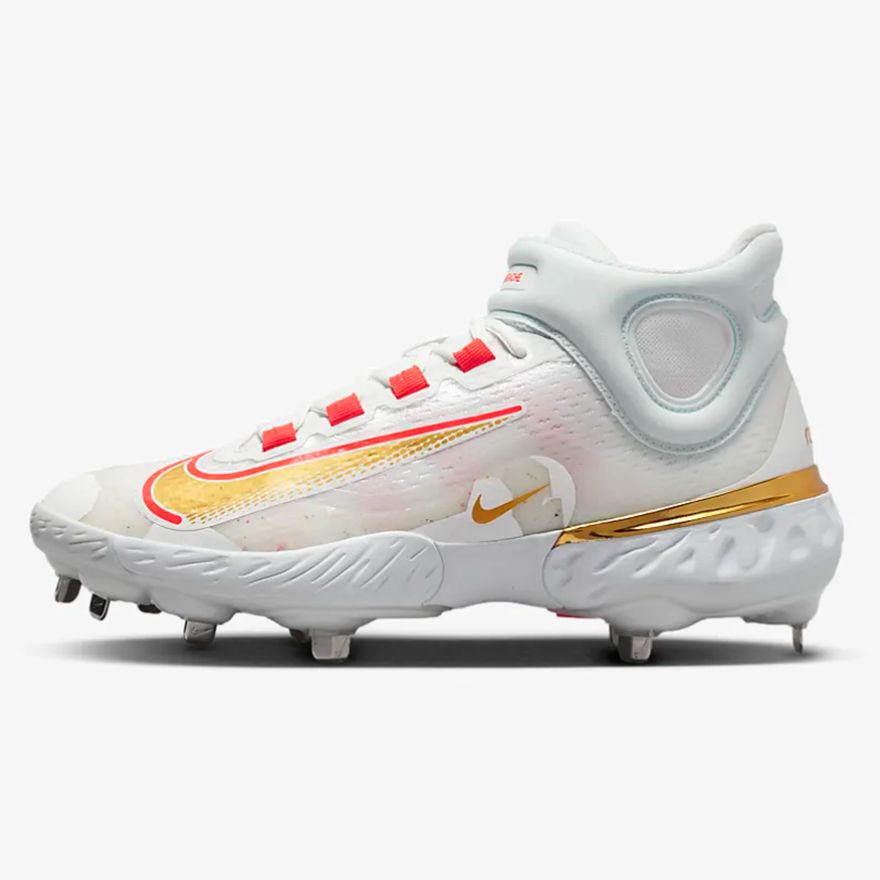 An updated anatomical strap that wraps around the midfoot helps meet your containment needs. A mesh window in the upper harkens back to the iconic Nike Huarache from the basketball world to help create lighter weight compared to its baseball predecessor.